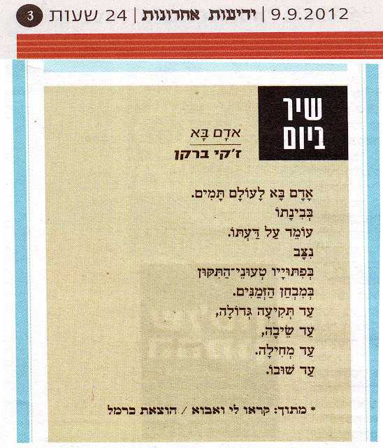מתוך ספר השירים "קראו לי ואבוא" מאת ז'קי ברקן